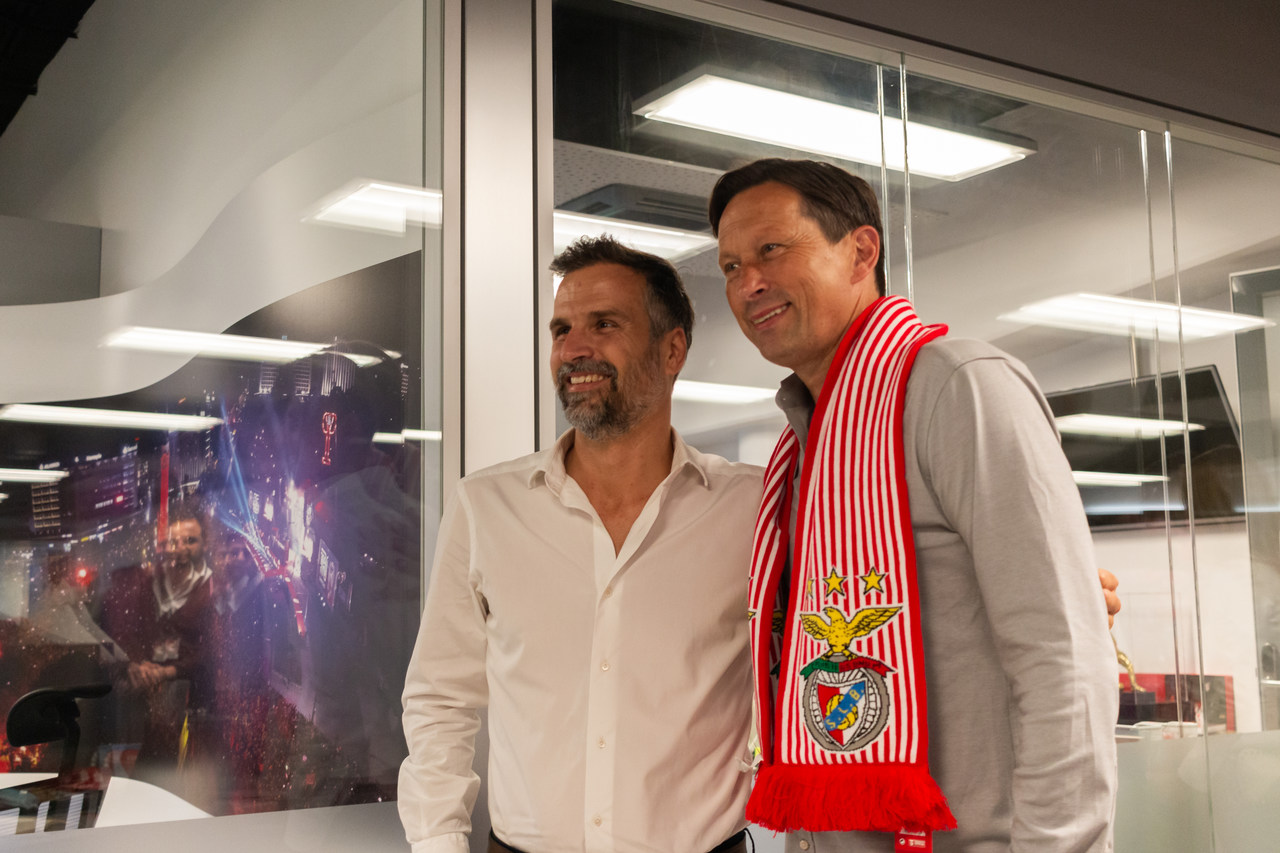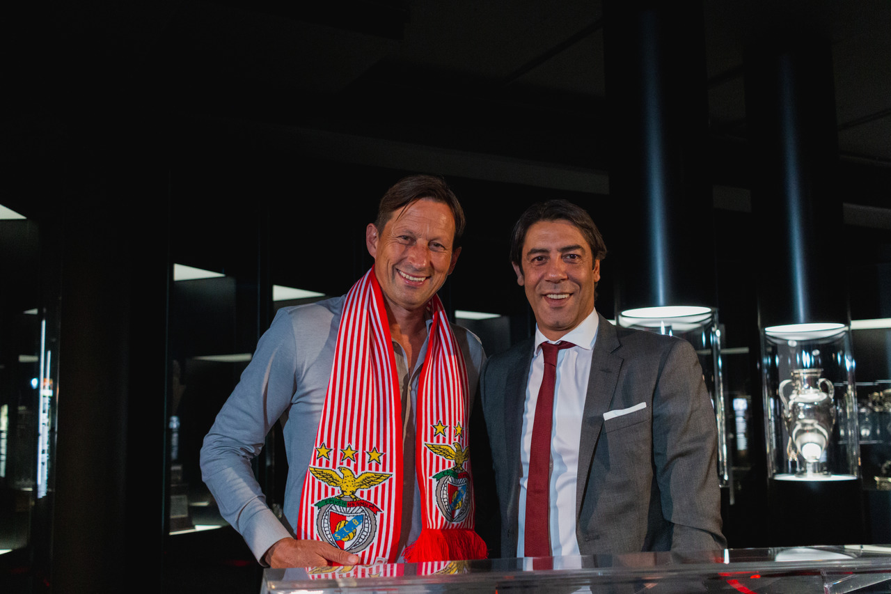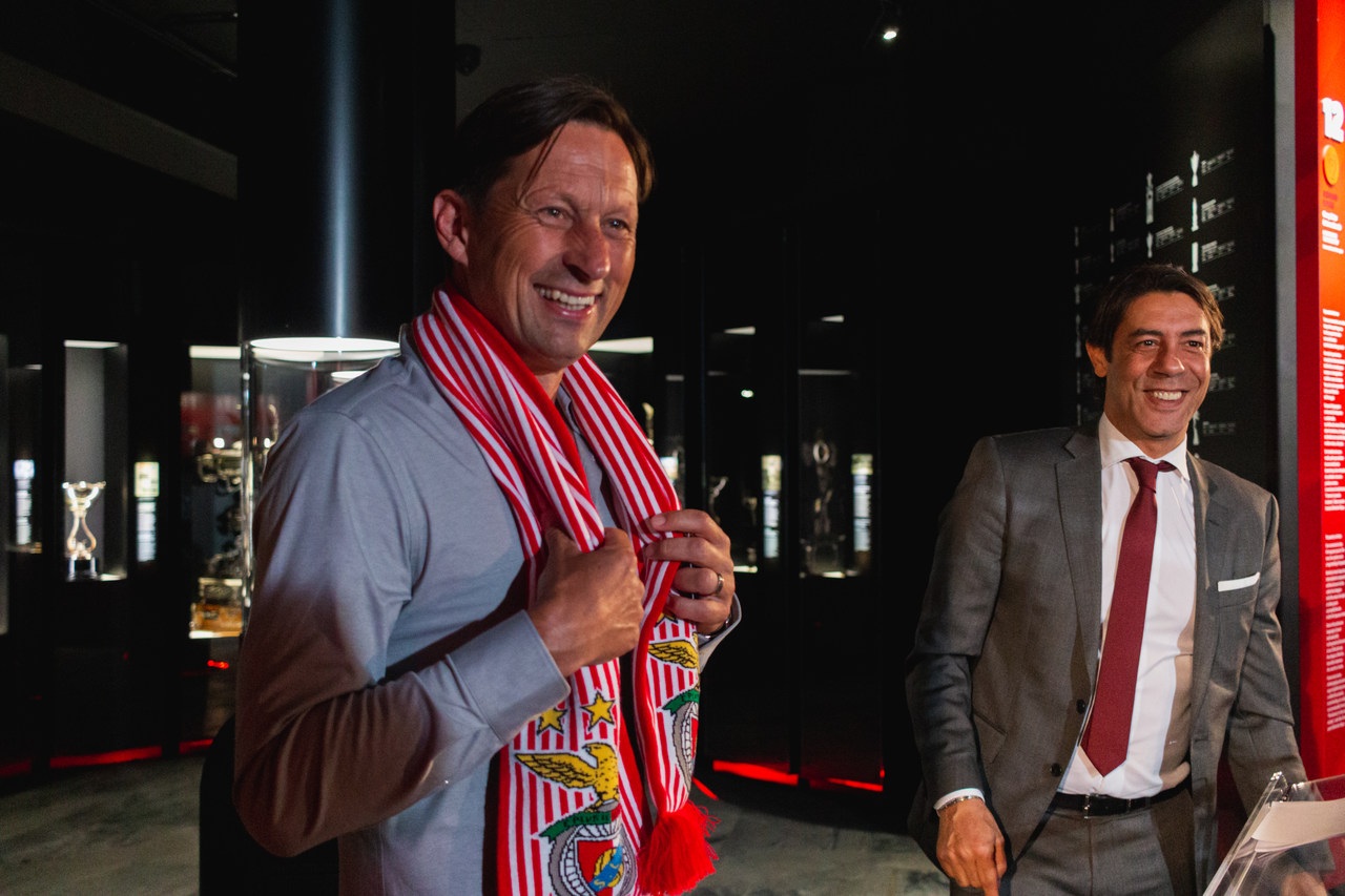 The new coach of Sport Lisboa e Benfica's professional football team, Roger Schmidt, arrived at Lisbon this Tuesday morning, May 24, penned a contract with contract with Benfica valid for two seasons at the Benfica Museum – Cosme Damião and continued the planning and preparation for the 2022/23 season, duly articulated with President Rui Costa and General Manager Lourenço Coelho. The German coach met some of the Club's departments, interacted with employees at Estádio da Luz and participated in several work meetings.