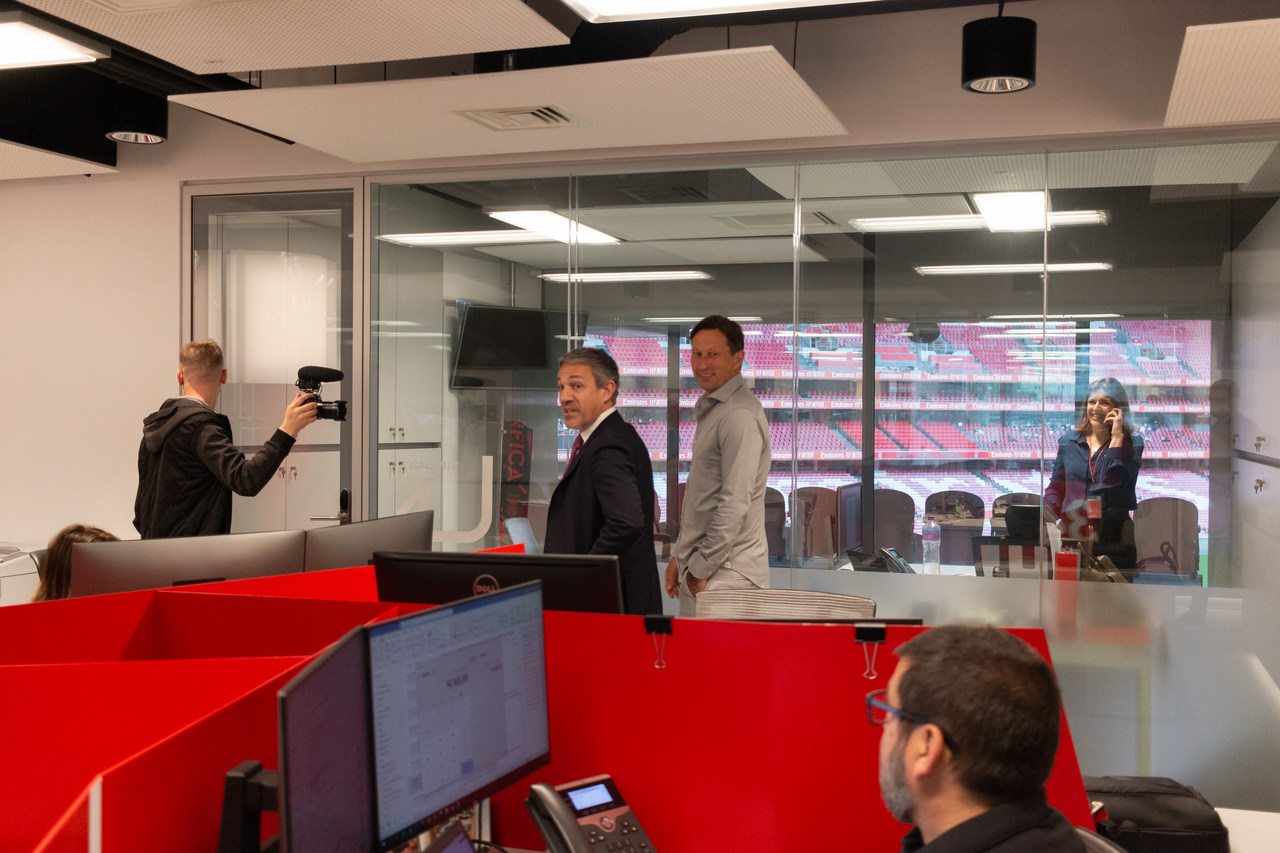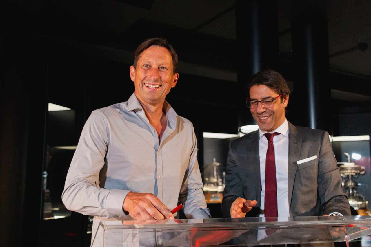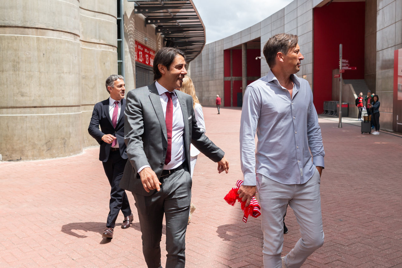 The new coach of Sport Lisboa e Benfica's professional football team, Roger Schmidt, arrived at Lisbon this Tuesday morning, May 24, penned a contract with contract with Benfica valid for two seasons at the Benfica Museum – Cosme Damião and continued the planning and preparation for the 2022/23 season, duly articulated with President Rui Costa and General Manager Lourenço Coelho. The German coach met some of the Club's departments, interacted with employees at Estádio da Luz and participated in several work meetings.