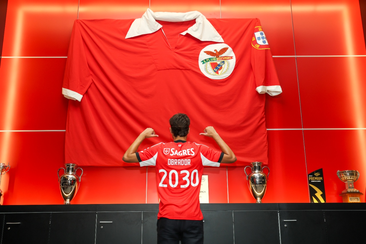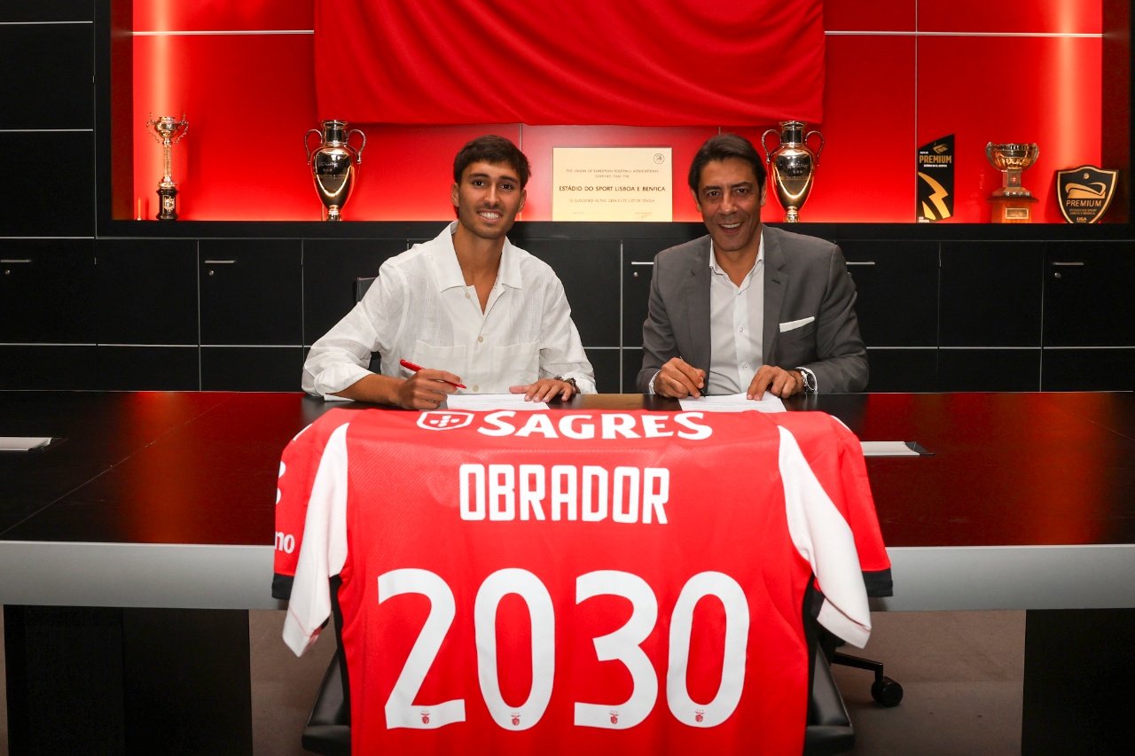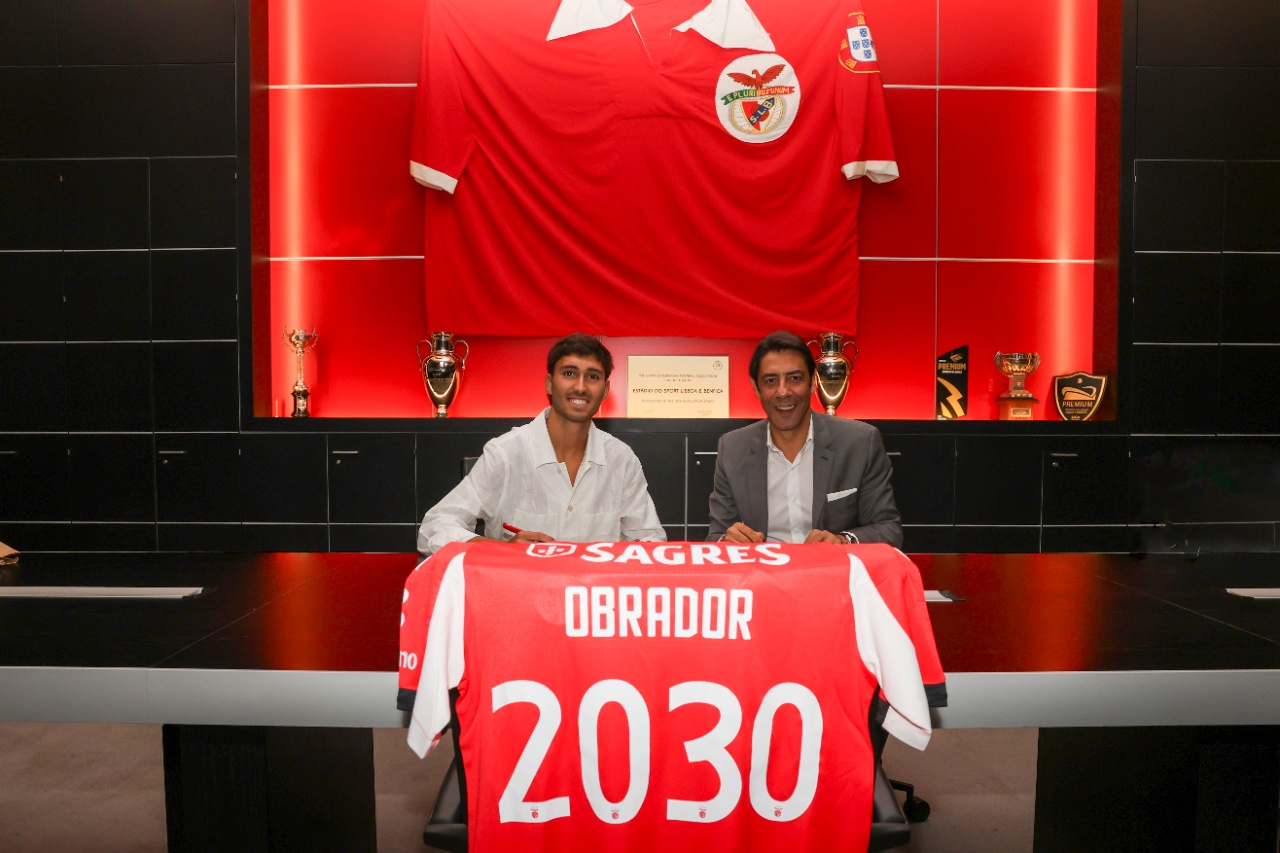 Obrador is already wearing the Sacred Mantle! Next to Club's President Rui Costa, the 21-year-old left-back, signed a contract with Benfica valid until 2030, transferring from Real Madrid. See the images...