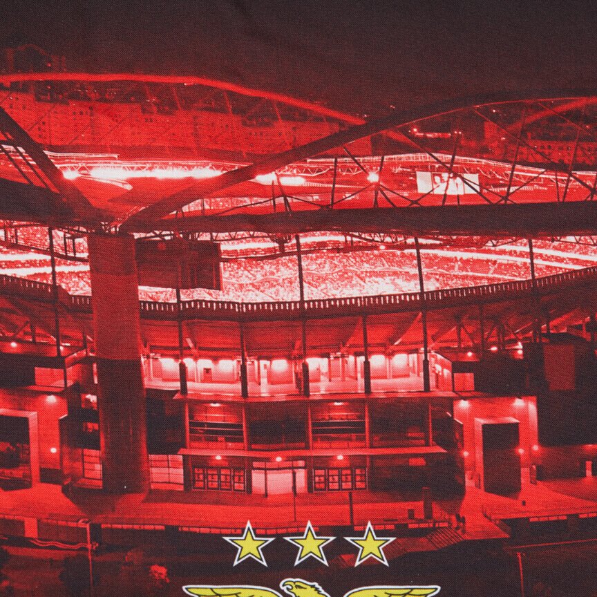 Small dog bed with the image of the SL Benfica stadium. In black with the image of the stadium in the night and the colored emblem logo.
