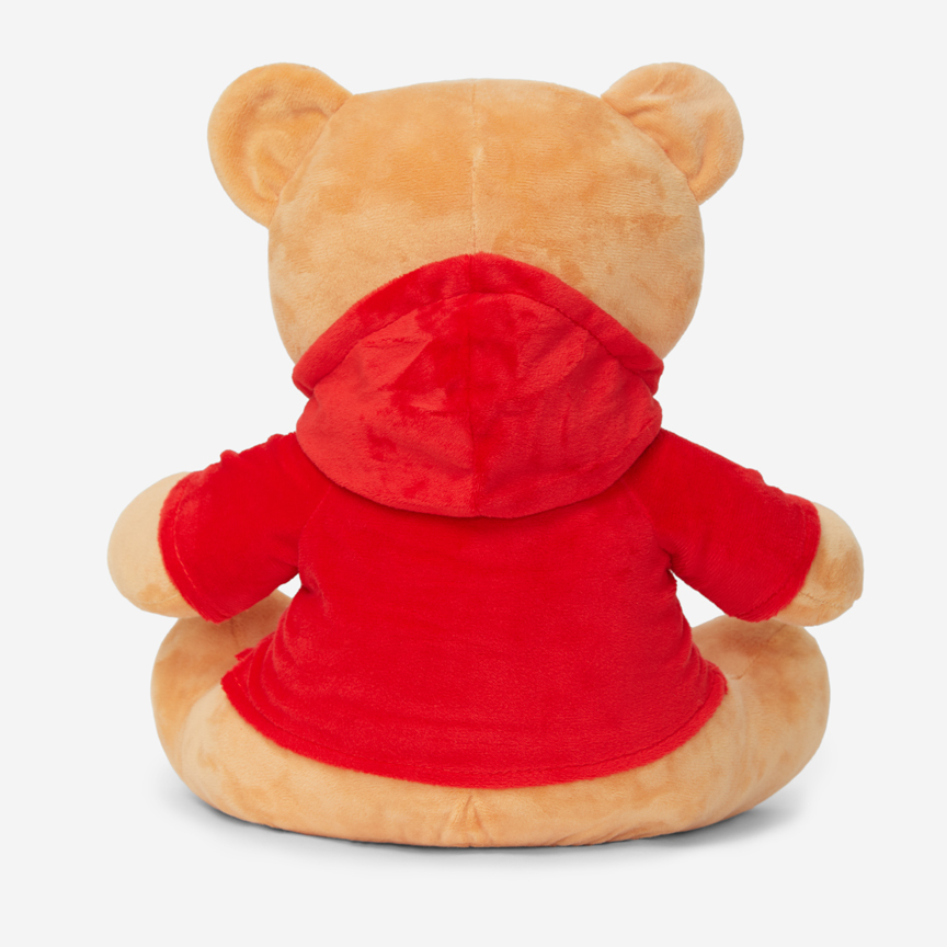 Sport Lisboa e Benfica teddy bear. A 30 cm tall teddy bear, dressed in a red hooded sweatshirt with the SL Benfica emblem in monochrome white in the centre, accompanied by two drawstrings ...