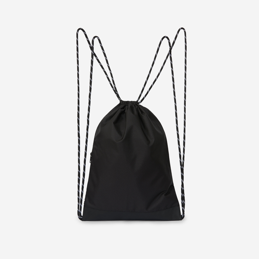 The central pocket closes with a drawstring and there is a small zipped pocket on the side of the bag.