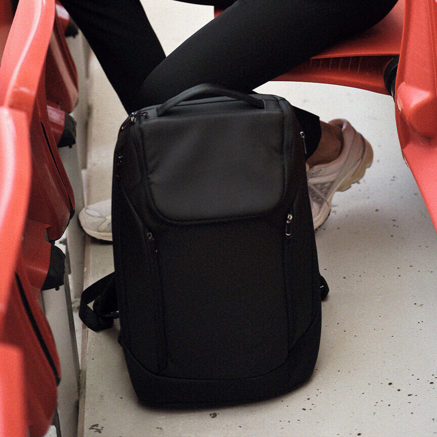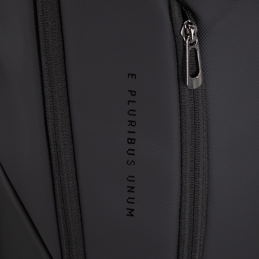 Backpack made of PU Polyester with high-quality black lining, straps and zippers.