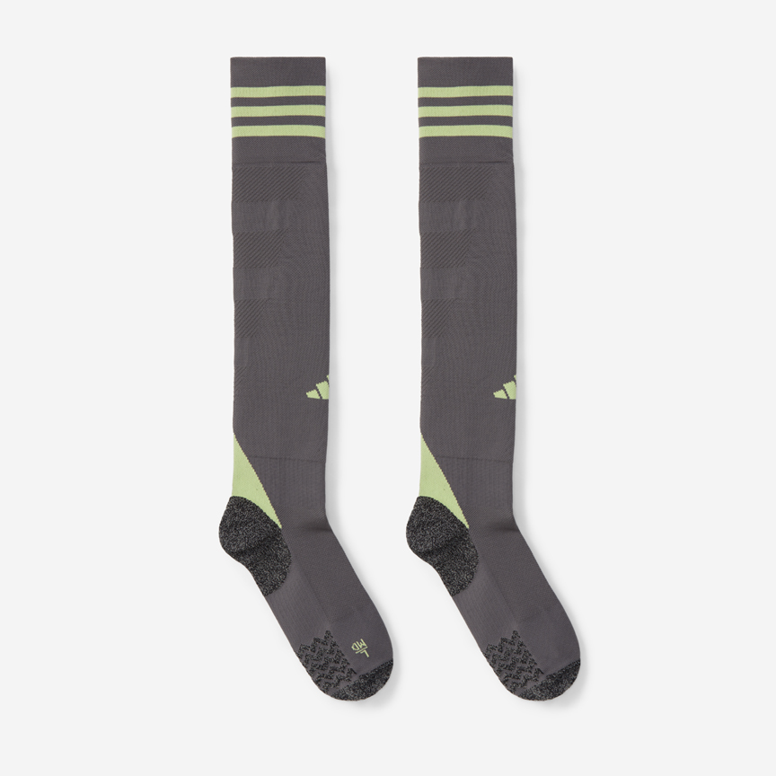 Black socks worn by the goalkeeper of Sport Lisboa e Benfica during the 2025-2026 season.The iconic Adidas stripes and logo are featured on the sock shaft.The heels and toe areas are ...