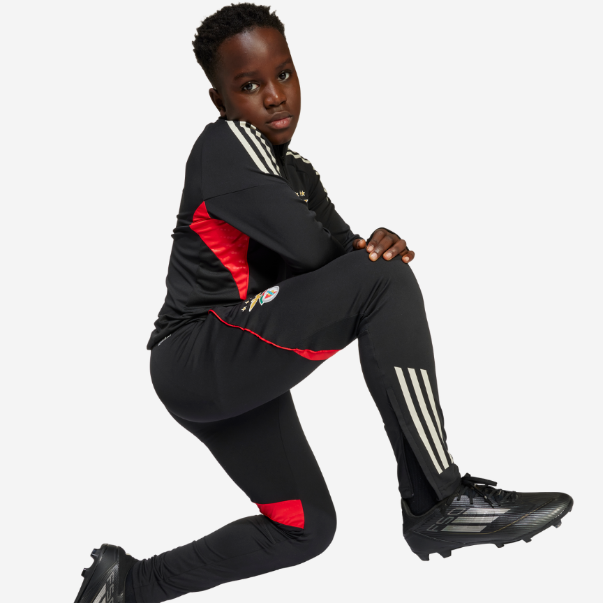 Black Adidas trousers for kids, worn by the Sport Lisboa e Benfica team during their leisure moments in the 2025-2026 season.