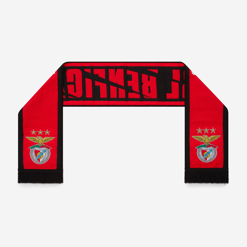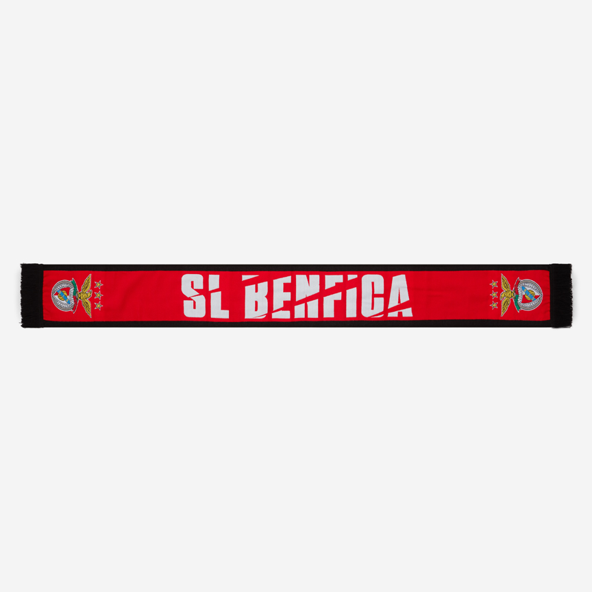 High-definition red scarf, with the inscription "SL Benfica" in white.Features black outline and fringes. At both ends of the scarf, we have the emblem of O Glorioso.Perfect to ...