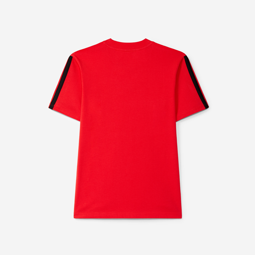 Red T-shirt, from Sport Lisboa e Benfica, for children. At the center of the shirt we have the inscription "Sport Lisboa e Benfica", accompanied by the black Adidas logo, and on the shoulders, the brand’s iconic stripes. Illustrative images.