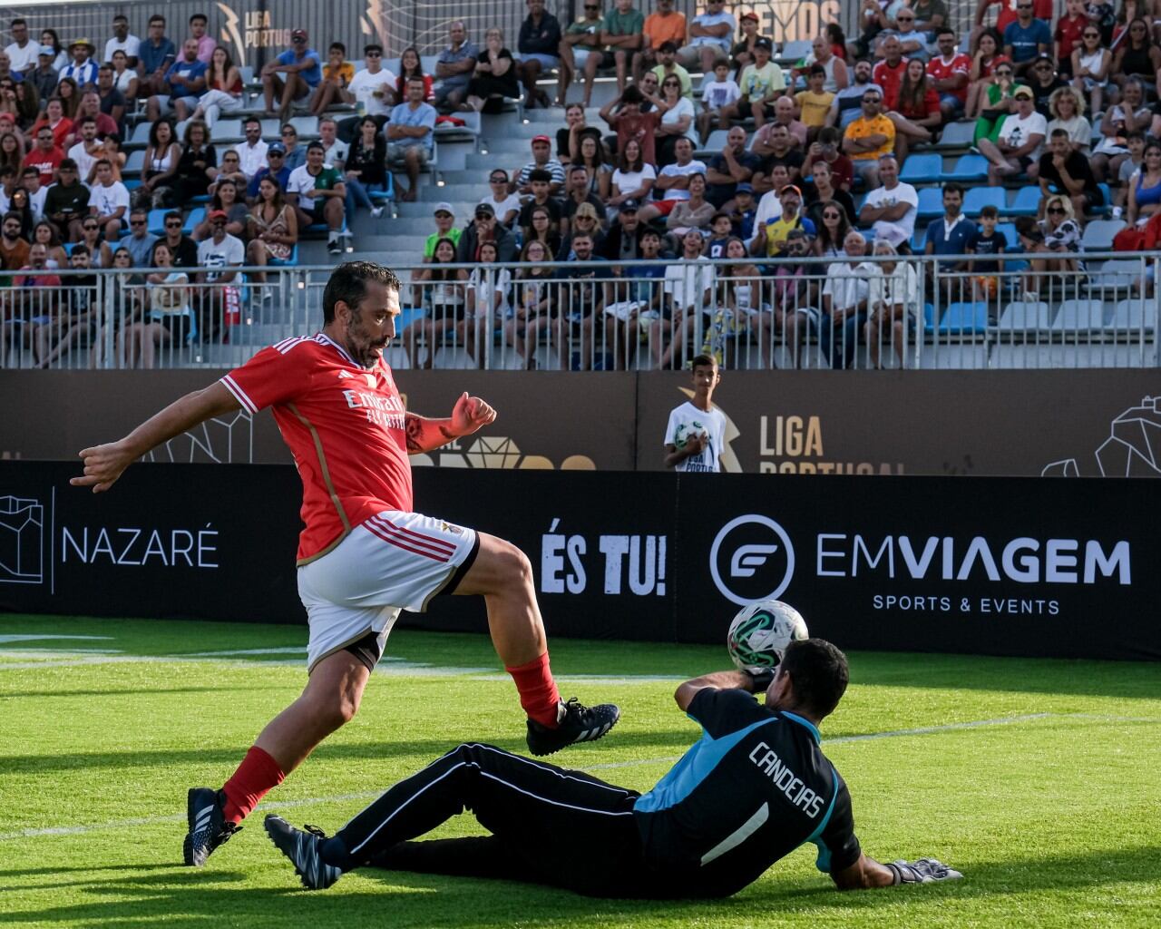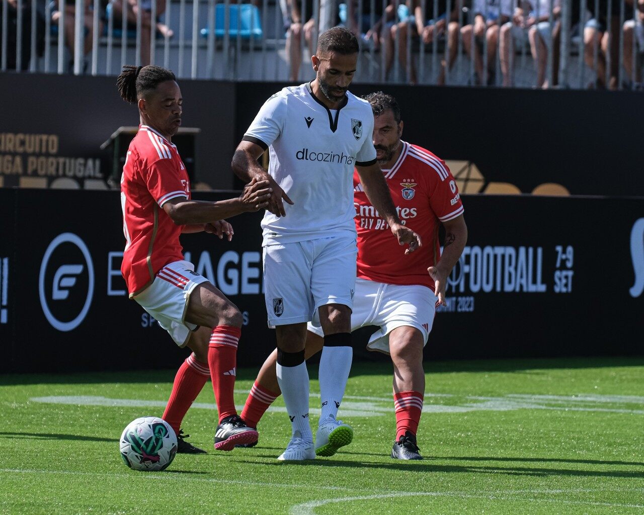 Benfica a été vice-champion de l'édition inaugurale du Circuit Liga Portugal Legends, qui a eu lieu ce week-end, au Estádio do Viveiro "Jordan Santos", à Nazaré. Menée par Dimas, l'équipe des Aigles a remporté le Groupe B après un match nul contre Arouca (2-2) et une énorme victoire contre Farense (2-14), le samedi 22 juillet. Ce dimanche 23 juillet, les Aigles ont surclassé Sporting (5-1) en demi-finale et ont été battus en finale par Vitória SC (1-3). Élu MVP de la compétition, Sílvio a parlé d'une « participation digne » du SL Benfica. « Tout le monde est à l'honneur. Nous avons fait un grand tournoi et nous avons été dignes, même si la finale ne s'est pas déroulée de la meilleure façon », a-t-il déclaré. Découvrez ici les images des anciens joueurs du SL Benfica en action...