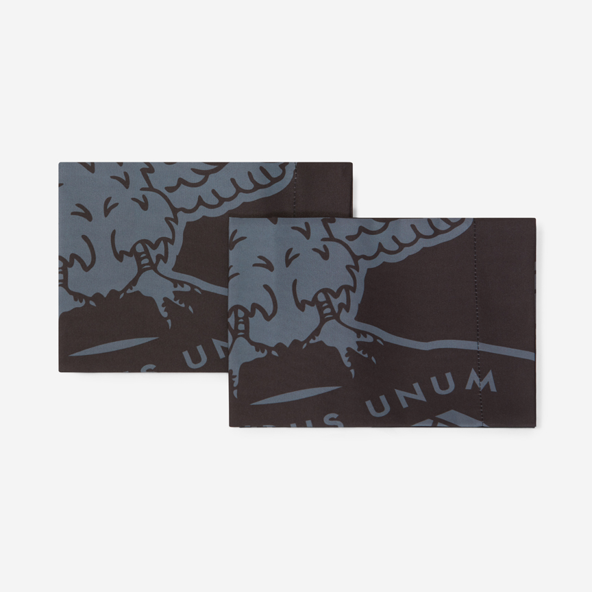Ensemble composé de deux taies de coussin noires portant l’emblème monochrome du Sport Lisboa e Benfica.