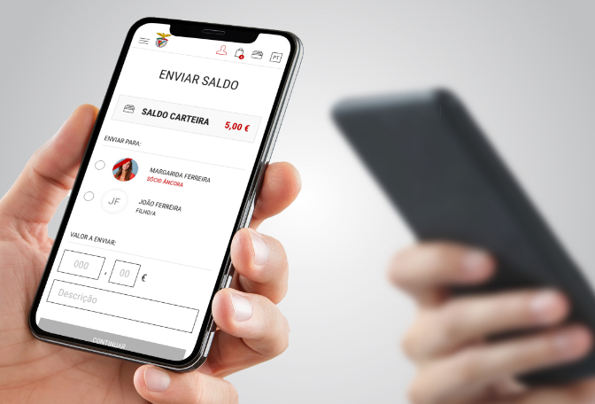 Os membros de uma família podem enviar e pedir saldo entre si para acumular na sua carteira virtual e pagar quotas, camisolas, bilhetes ou qualquer produto SL Benfica.