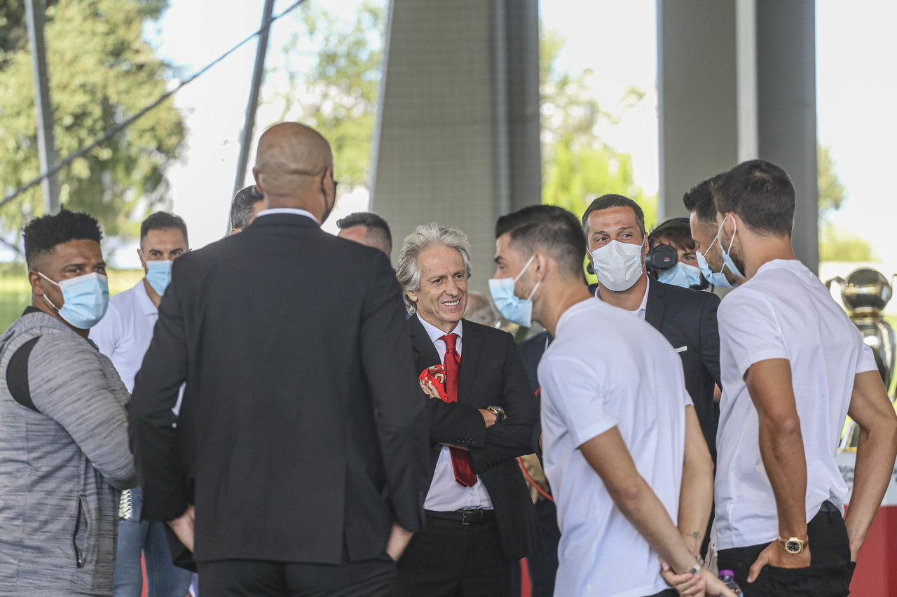 Jorge Jesus com Presidente e elementos da estrutura