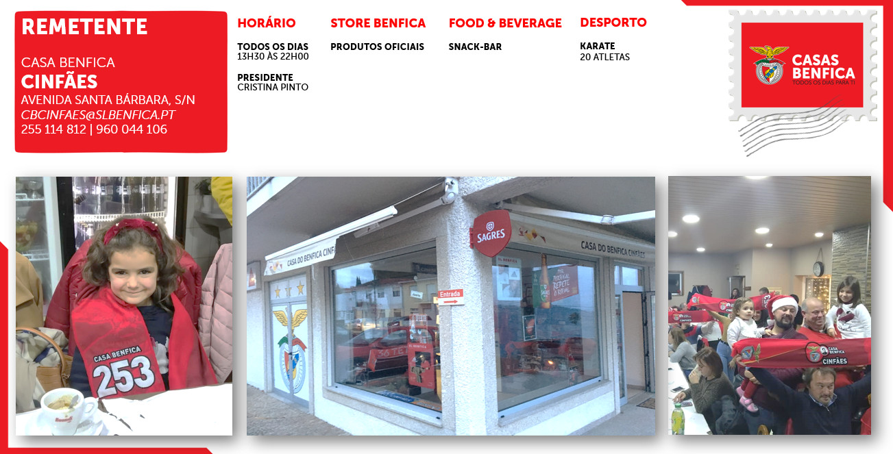 A Casa Benfica Cinfães abriu as portas em 2017 numa tarde em que um banho de multidão encheu o jardim central da terra e centenas de pessoas se vestiram à Benfica para receber o Bicampeão Europeu José Augusto, o vice-presidente do SL Benfica Sílvio Cervan e a Águia Vitória. Um momento de fantástica mística que reflete como a terra vive o Benfica de forma extraordinária. A sede da Casa é um espaço bem localizado numa das saídas de Cinfães e totalmente preparado para receber Sócios, adeptos, amigos e população em geral. Tem na sua componente desportiva 20 atletas no karaté, com idades muito diferenciadas, entre os 5 e os 56 anos de idade. Representa com orgulho a Mística do Benfica numa terra geograficamente distante da origem, mas em que a diáspora se une neste espaço.