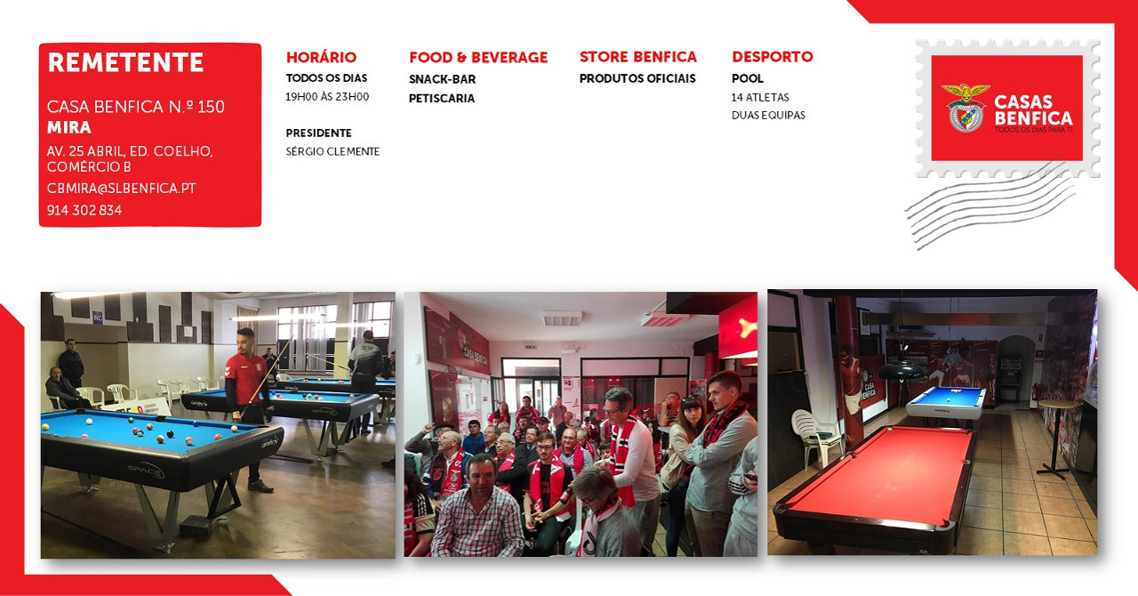 Desde 2002 que a Avenida 25 de Abril nunca mais foi a mesma. Cidade de benfiquistas fervorosos, foi no início da primavera deste mesmo ano, a 26 de setembro mais precisamente, que tudo mudou, com a abertura da Casa Benfica Mira. Os meses seguintes foram cruciais para a implementação final do projeto, que teve o seu auge no dia 15 de março de 2003, com a inauguração oficial da embaixada n.º 150 do Clube. Assim, nasceu um espaço destinado a todos os benfiquistas do concelho, onde o bom convívio é uma realidade. As suas duas equipas de pool dinamizam a vertente desportiva da Casa e levam o emblema vermelho e branco de norte a sul do País.