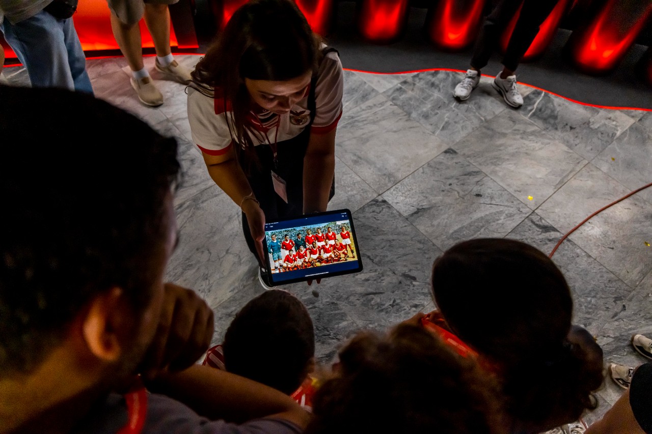 A curiosidade dos mais novos ao verem alguns dos alinhamentos mais emblemáticos da história do Glorioso