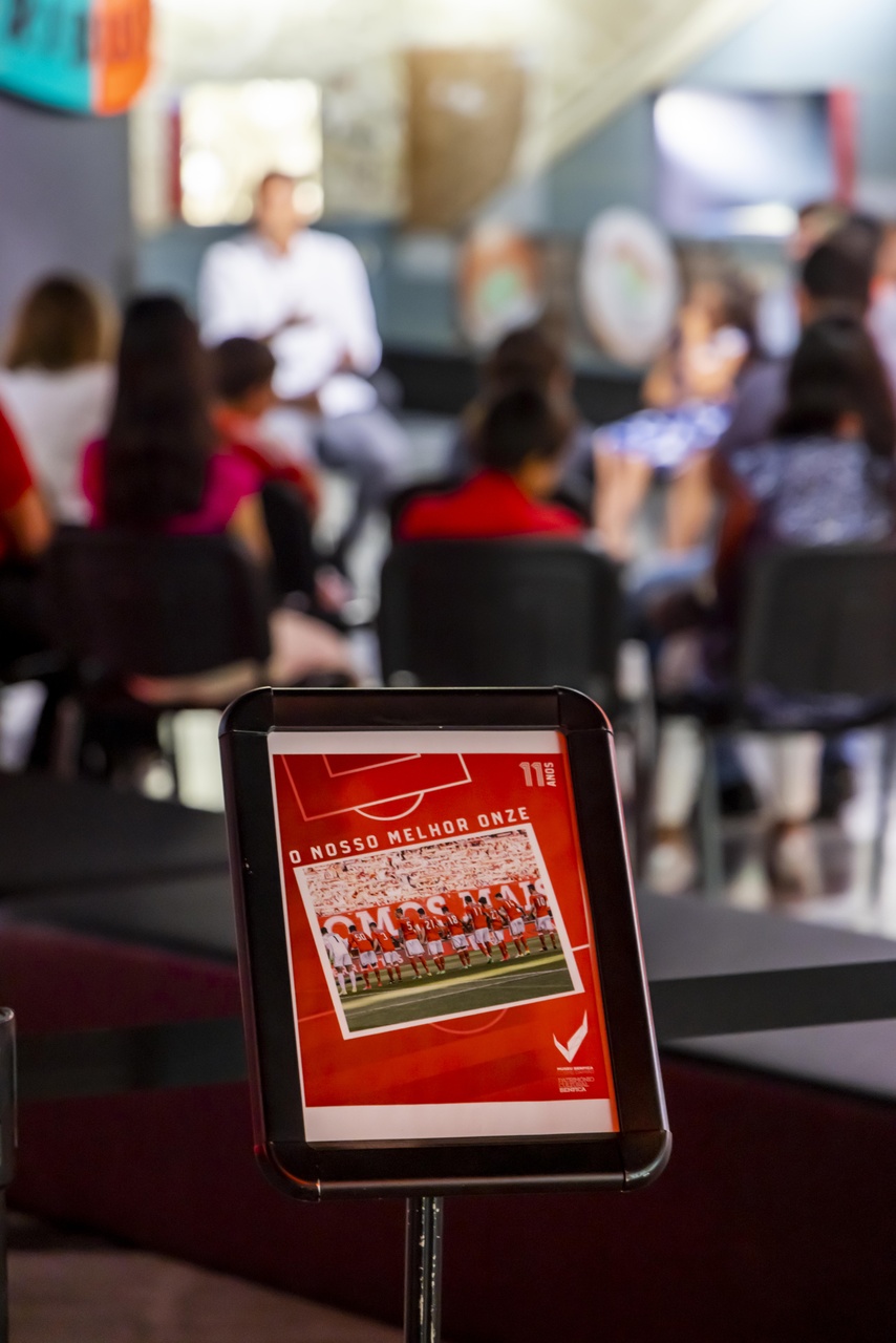 A iniciativa "O nosso melhor onze", a primeira inserida na comemoração do 11.º aniversário do Museu Benfica – Cosme Damião, a qual se realizou nesta sexta-feira, 26 de julho, contou com 25 pessoas e a presença de Nélson Veríssimo, treinador da equipa B de futebol. O técnico, perante uma sala cheia de adeptos com idades compreendidas entre os 5 e os 73 anos, abordou a sua passagem como jogador e treinador do Clube, após os presentes terem efetuado o seu próprio onze e debatido alguns dos alinhamentos mais emblemáticos da história do Clube.