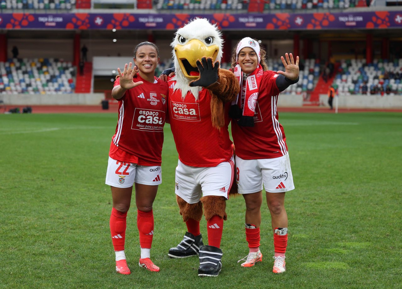 As capitãs de Benfica e Sporting com a equipa de arbitragem