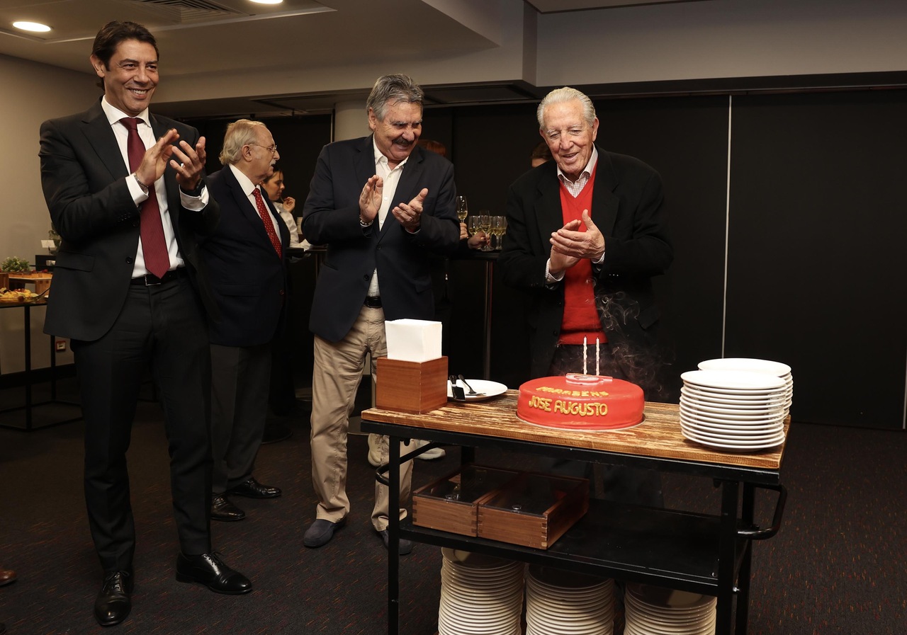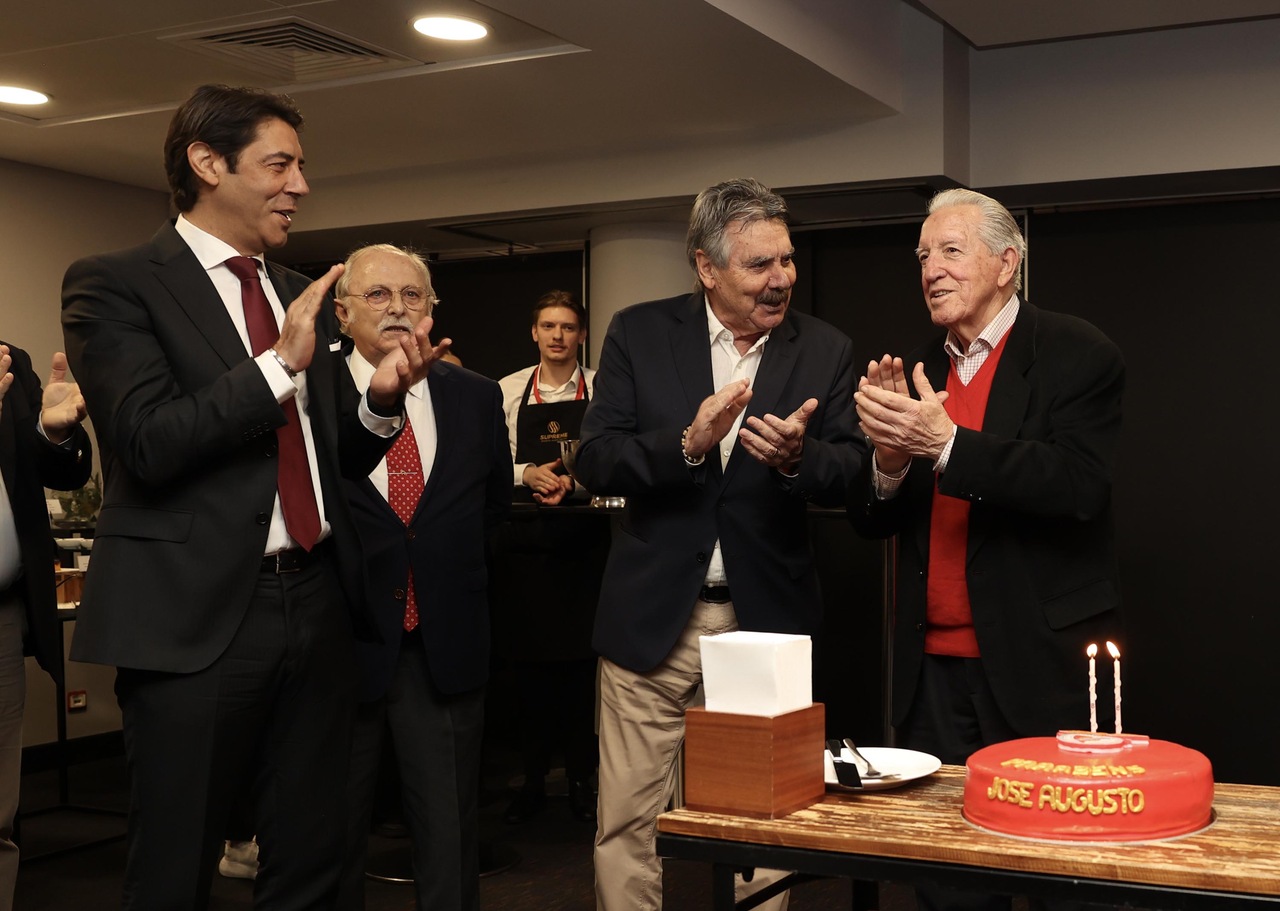Bicampeão europeu, sinónimo de Mística do Sport Lisboa e Benfica, José Augusto foi homenageado neste domingo, 13 de abril, dia do seu 88.º aniversário. Durante o intervalo do Benfica-Arouca, da 29.ª jornada da Liga Betclic, foi ovacionado pelos Benfiquistas, agradecendo o gesto a partir da Tribuna Presidencial. Ali, no camarote, na presença do Presidente Rui Costa, entre amigos e familiares de José Augusto, foram cantados os Parabéns a um dos nomes incontornáveis da história do Glorioso.
