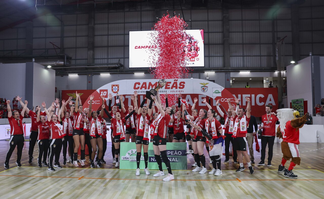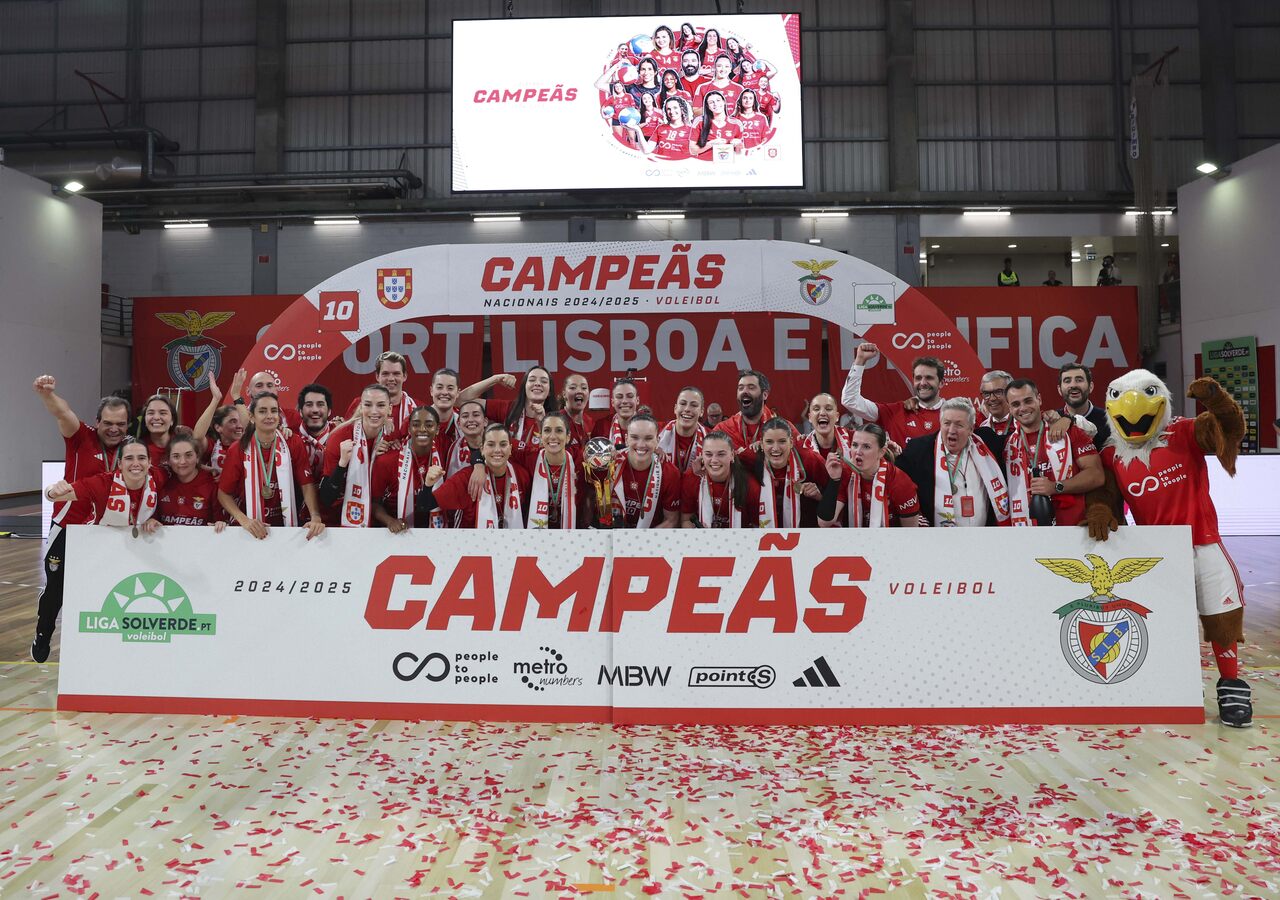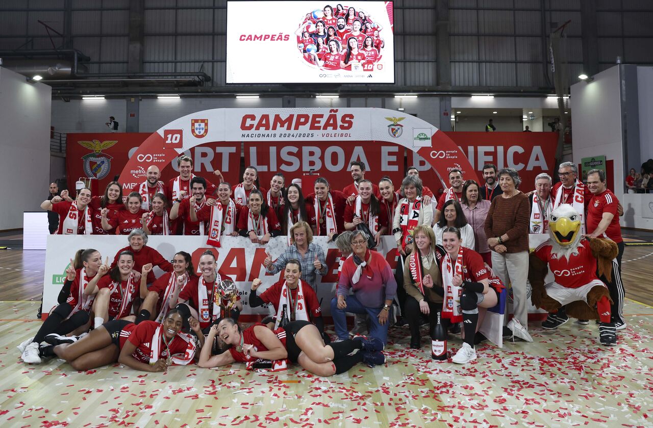O grupo que deu ao Benfica o 10.º título de campeão nacional feminino de voleibol