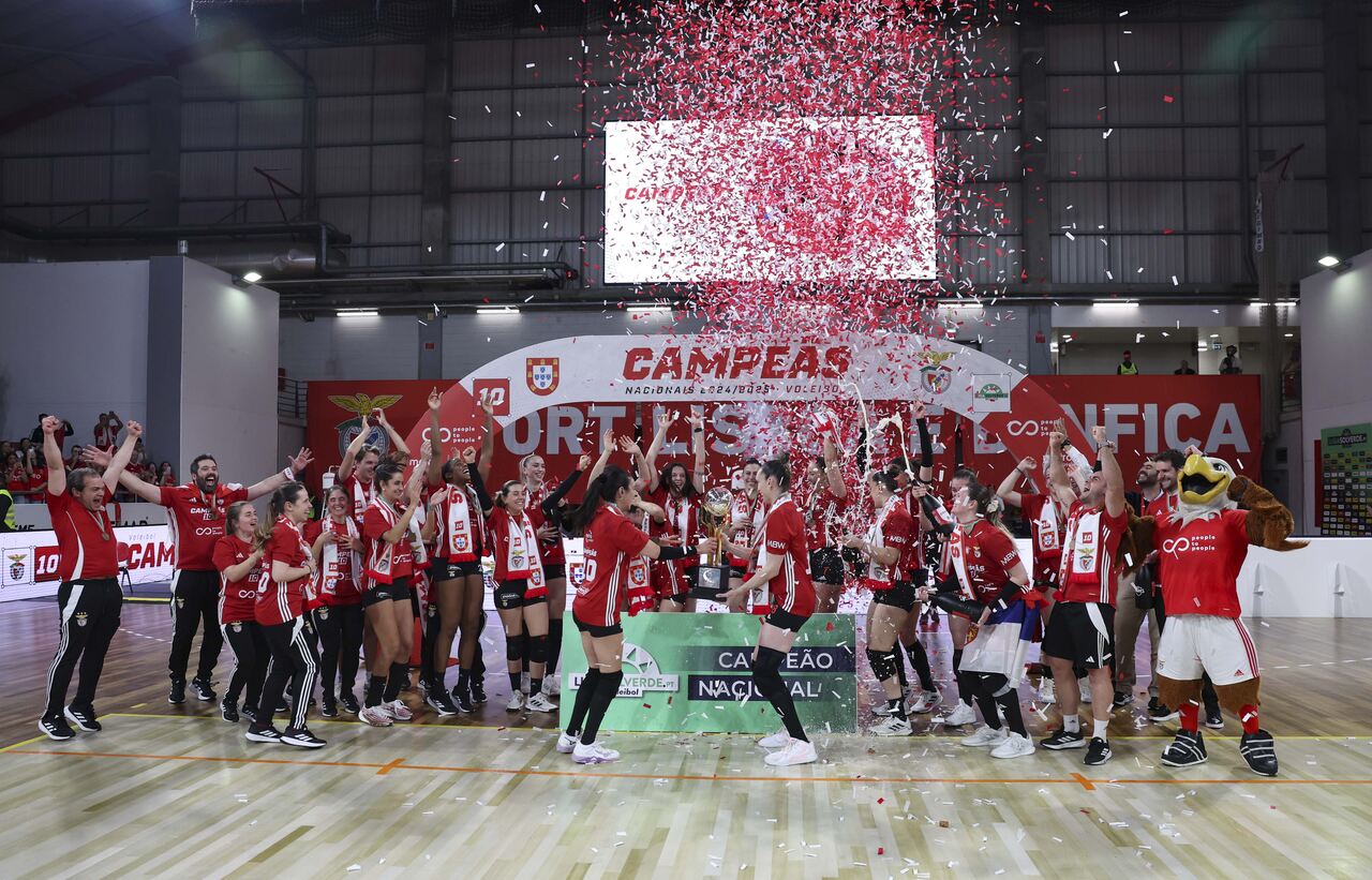 Noite de glória! No Pavilhão n.º 2 da Luz, a equipa feminina de voleibol do Benfica sagrou-se, nesta quinta-feira, 8 de maio, campeã nacional! Num emotivo jogo 5 que só terminou na negra, as águias triunfaram por 3-2, vencendo assim esta frenética final do play-off por igual resultado. 50 anos depois da última conquista, o Museu Benfica – Cosme Damião volta a receber o troféu do Campeonato Nacional feminino de voleibol. Fique com as melhores imagens de uma grande festa.