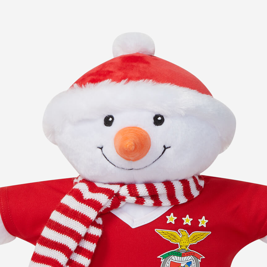 Peluche no formato de um boneco de neve, vestido com as cores tradicionais do Sport Lisboa e Benfica. A camisola com o emblema do clube e o cachecol destacam o amor pela equipa. Este peluche é o presente ideal para os adeptos mais pequenos do clube.
