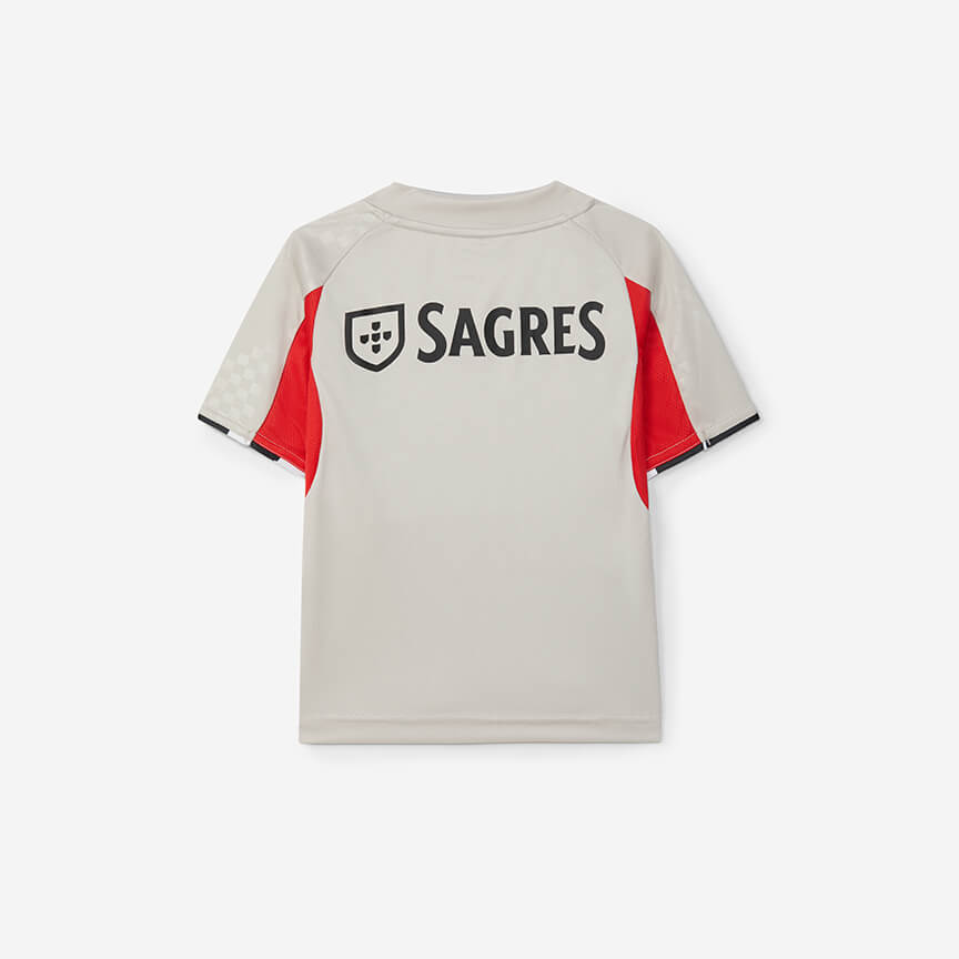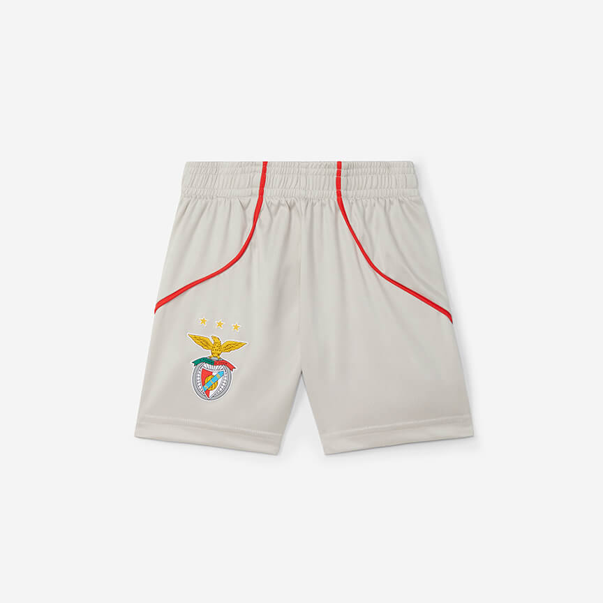Réplica do equipamento alternativo bege utilizado pela equipa do Sport Lisboa e Benfica em campo, durante a época de 2025-2026, para criança.