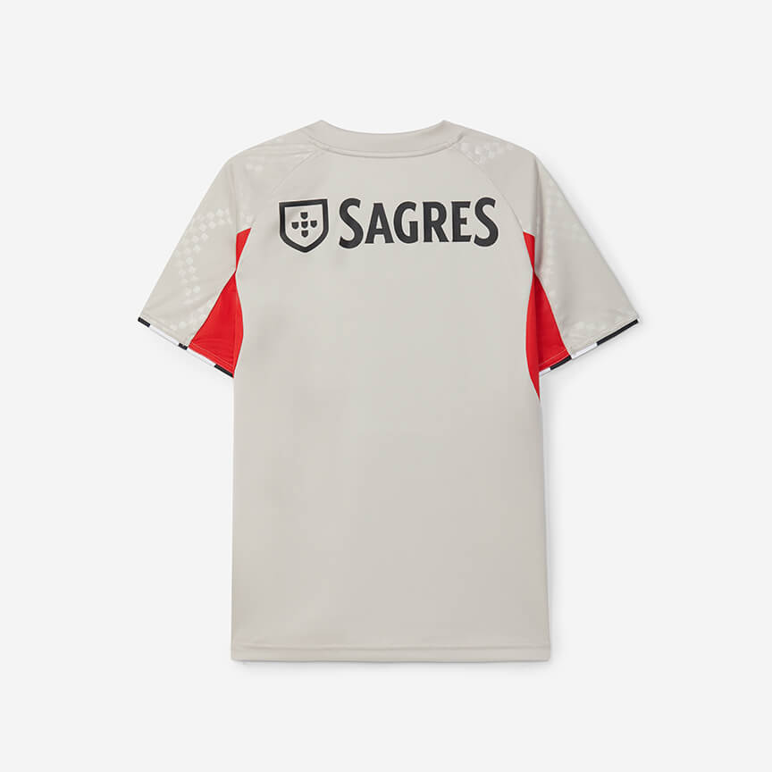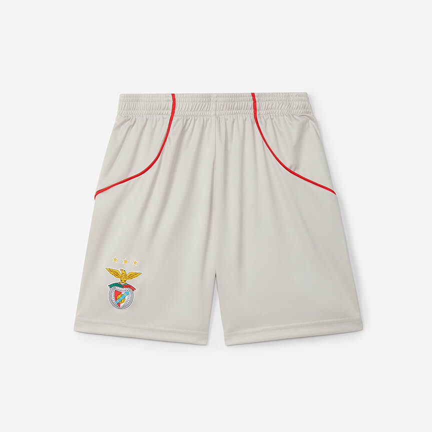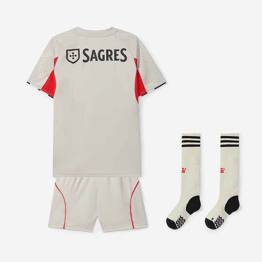 Réplica do equipamento alternativo bege utilizado pela equipa do Sport Lisboa e Benfica em campo, durante a época de 2025-2026, para criança.