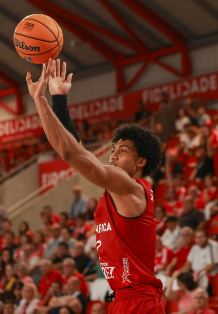 Camisola do equipamento principal do Sport Lisboa e Benfica para a época de 2025-2026, utilizada pela equipa de Basquetebol Masculino.