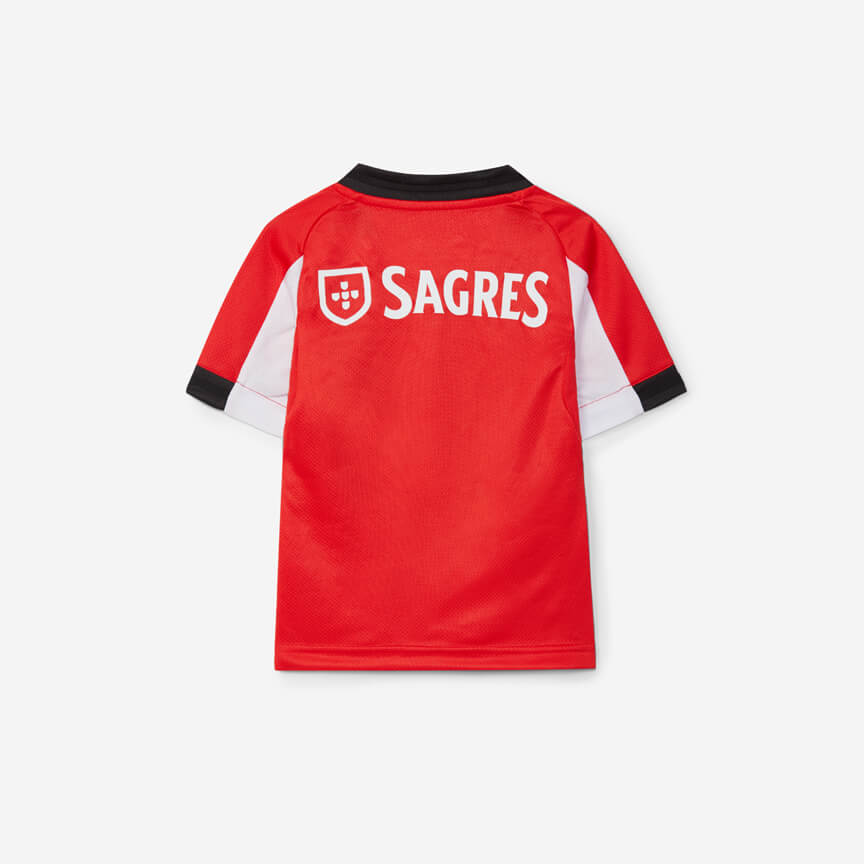 Réplica do equipamento principal utilizado pela equipa do Sport Lisboa e Benfica em campo, durante a época de 2025-2026, para criança.